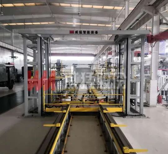河南威猛振動為河南新鄉某專汽公司設計的柔性方艙裝配生產線已正式投入使用,柔性生產線共分為八個工位,每個工位由兩臺焊接機器人、平移軌道、升降軌道、方艙定位支架構成,用于對板件角部、底...