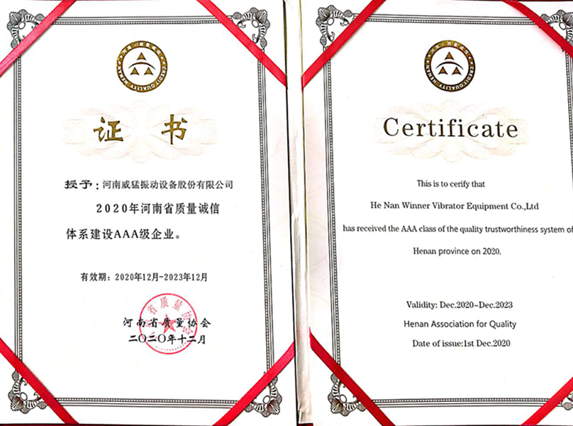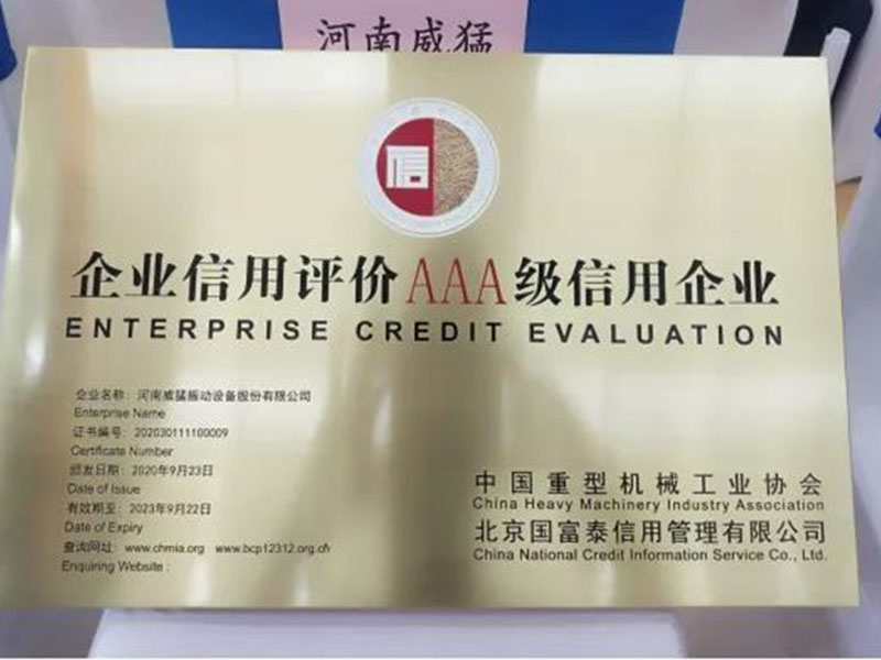 河南威猛振動憑借過硬的產品質量、良好的企業信譽榮獲“2020年度河南省質量誠信AAA級企業”稱號。這是威猛股份2018年榮獲質量誠信AAA級企業稱號以來,再次獲此殊榮。為了貫徹落實...