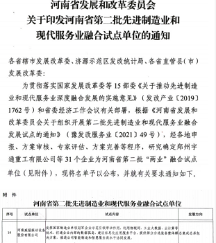 先進制造業+現代服務業 2021年10月9日,河南省發展和改革委員會印發河南省二批先進制造業和現代服務業融合試點單位的通知,研究確定了31家...