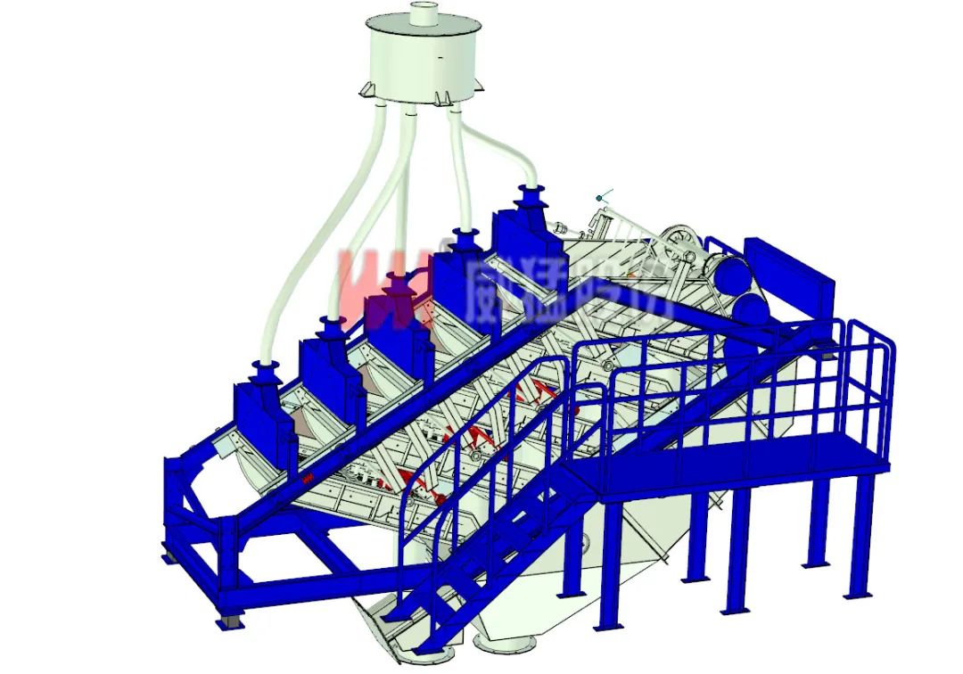 WFBS-D分布篩是威猛股份研發升級的新型篩分設備。其采用統一的振動源驅動多層篩箱共同振動且采用篩分系統的篩箱上下錯落分層布置,各層篩面完成給料、篩分作業,各層篩面的篩...