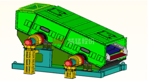 河南威猛復頻篩-C從傳統的圓振動篩發展而來,采用基本振動和附加振動的雙重振動原理,基本振動是由偏心塊旋轉產生的圓形振動,附加振動是基本振動帶動產生的橢圓形振動。兩個參振質量以相同的頻率相對振動,由于篩面兩端分別安裝在固定框和浮動框架上,聚氨酯篩面連續不斷的擴張、收縮,從而獲得較高的加速度。兩個參振質量相對線性運動是可調的,可以根據篩分物料不同調整所有必要的參數。
